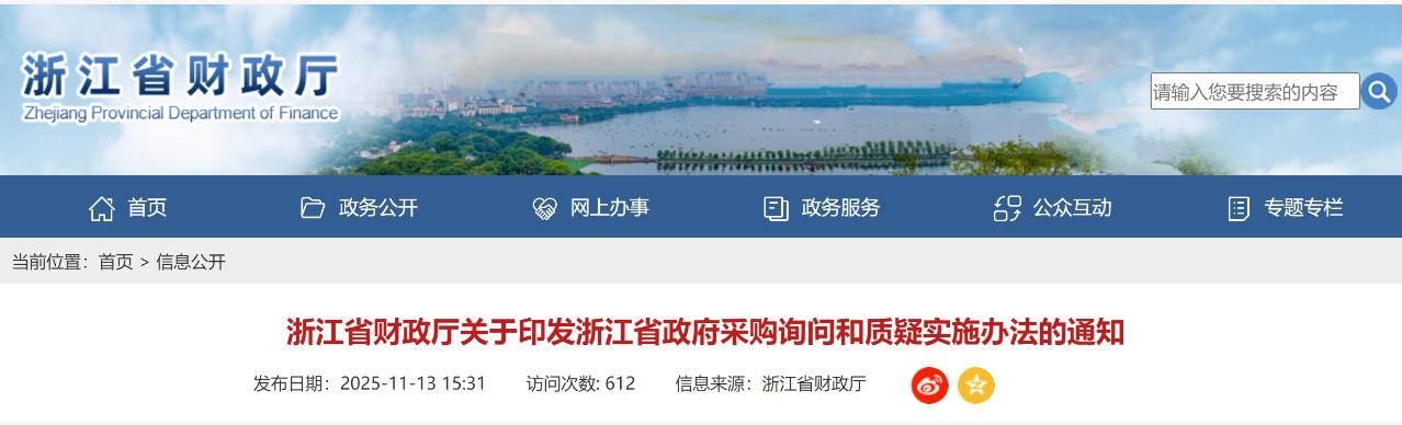 近日,為規(guī)范政府采購(gòu)詢問、質(zhì)疑行為,保護(hù)政府采購(gòu)當(dāng)事人合法權(quán)益,進(jìn)一步提高采購(gòu)效率,優(yōu)化政府采購(gòu)營(yíng)商環(huán)境,浙江省財(cái)政廳印發(fā)《浙江省政府采購(gòu)詢問和質(zhì)疑實(shí)施辦法》,自2026年1月1...